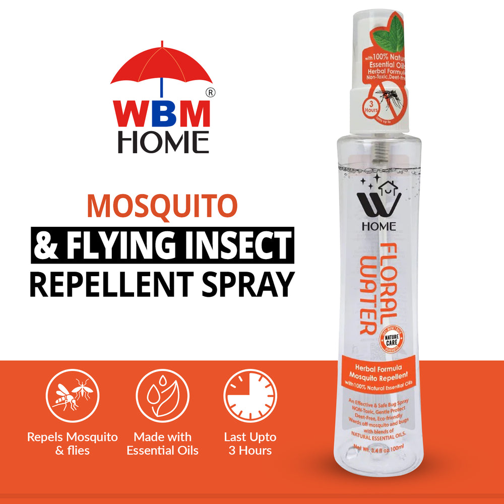 WBM Floral Water Spray is 100% natural and DEET-free. This Floral Spray for Mosquito is an effective topical insect repellent and does not contain any chemical or DEET. It protects against insects that bite and buzz around your families, such as mosquitoes, flies, and mites.